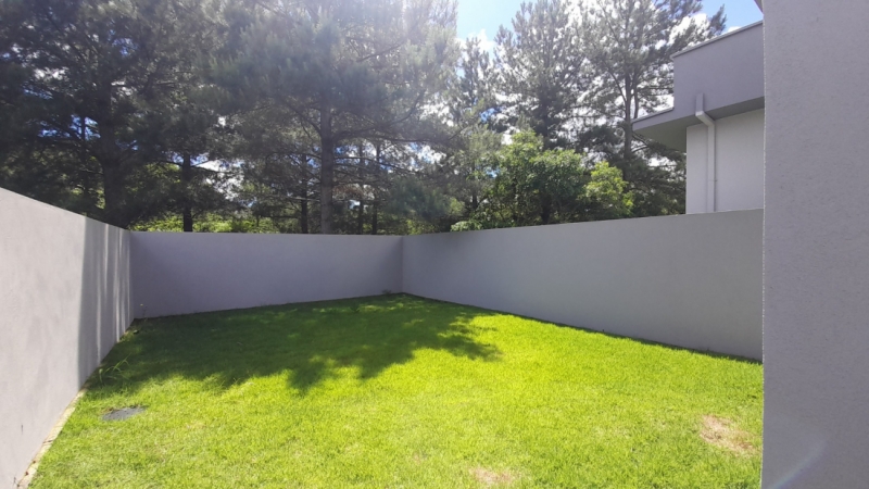 Com laje, piso porcelanato, aberturas em aluminio, rebaixo com gesso, patio fechado nas laterais e fundos.